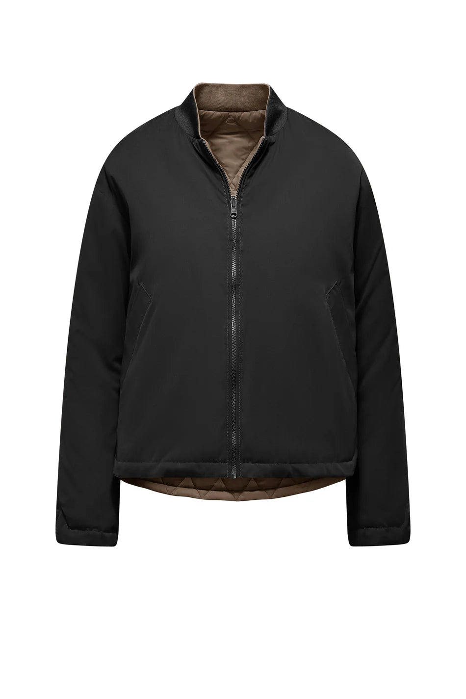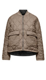 La giacca corta reversibile da donna Bomboogie art. JW9169TMQW5 unisce versatilità e stile con due finiture distinte. Il lato esterno in misto cotone con effetto mano pesca e collo in costina offre un aspetto elegante e raffinato, mentre il lato interno in nylon effetto mosso, caratterizzato da una trapuntatura a rombi, regala un design moderno e dinamico. La chiusura a zip e il fit regolare assicurano comfort e praticità, completati da due tasche laterali funzionali per piccoli oggetti o mani al riparo. Perfetta per affrontare con stile la quotidianità.