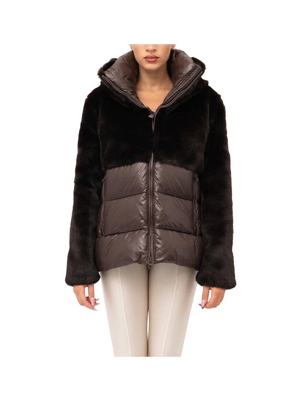 Questo giubbotto da donna Blauer modello FANEVIL combina l'eleganza dell'ecopelliccia nella parte superiore con la funzionalità del nylon lucido nella parte inferiore. Dotato di un cappuccio caldo e di impunture a righe orizzontali, è progettato per offrire protezione ottimale durante gli inverni più rigidi, garantendo al contempo uno stile raffinato e contemporaneo. Una scelta ideale per chi cerca performance termica senza rinunciare all’estetica.